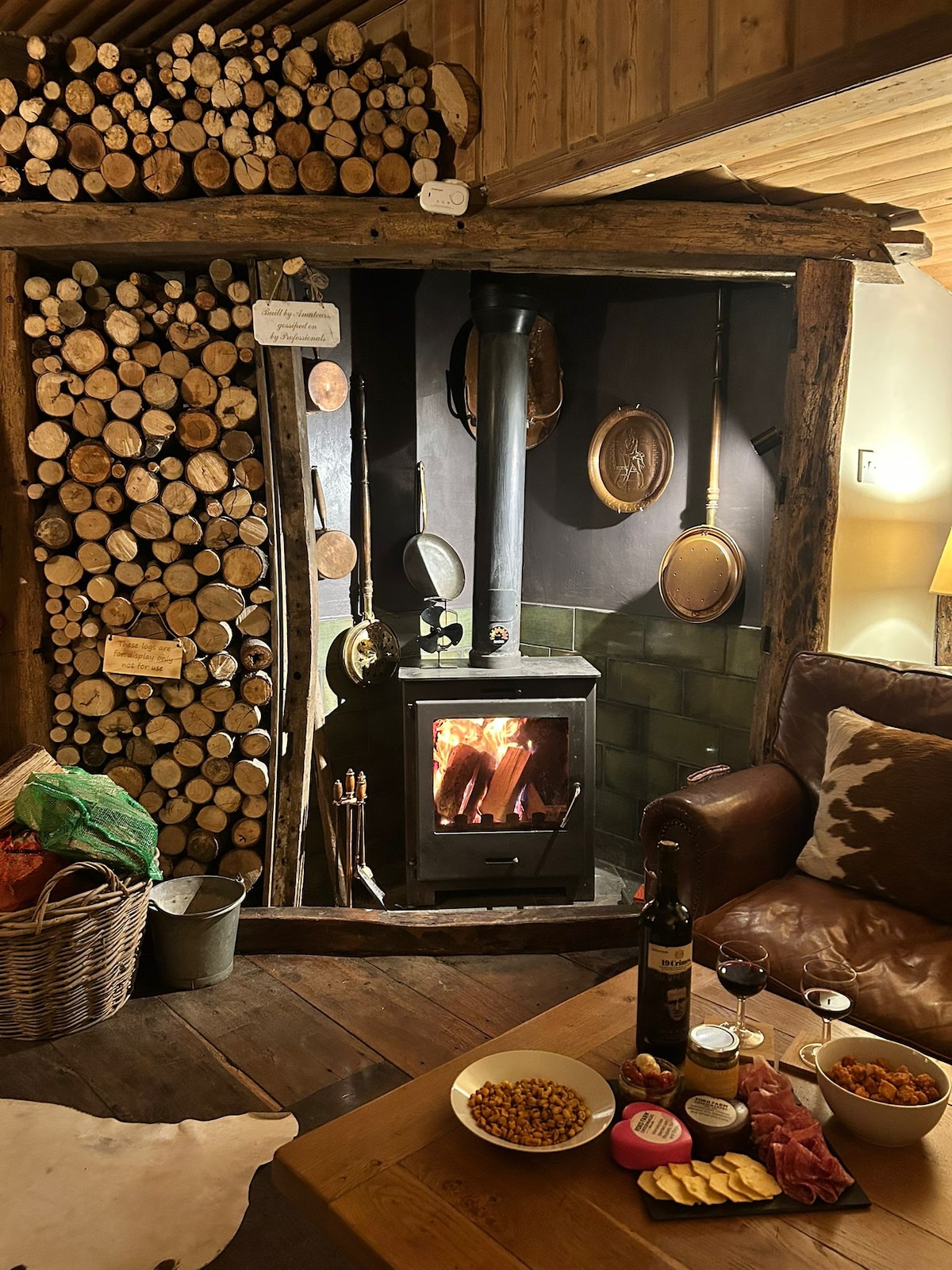 宽敞的现代谷仓,带露台和原木燃烧器