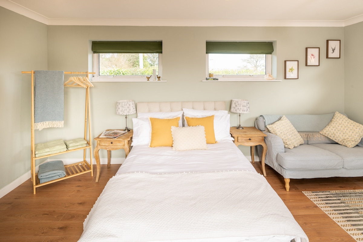 This stylishly converted old dairy has oak and beams and flooring and has beautiful far reaching views west towards Lyme Regis . It is perfect the perfect base for exploring this part of the beautiful Jurassic-coast, browsing around the Georgian market town of Bridport, fossiling in Lyme Regis and walking in the West Dorset’s Area Of Outstanding Beauty. Relax in the evening light out in the garden area looking over the fields and woods. Picnic is in the woodland with the bbq provided .