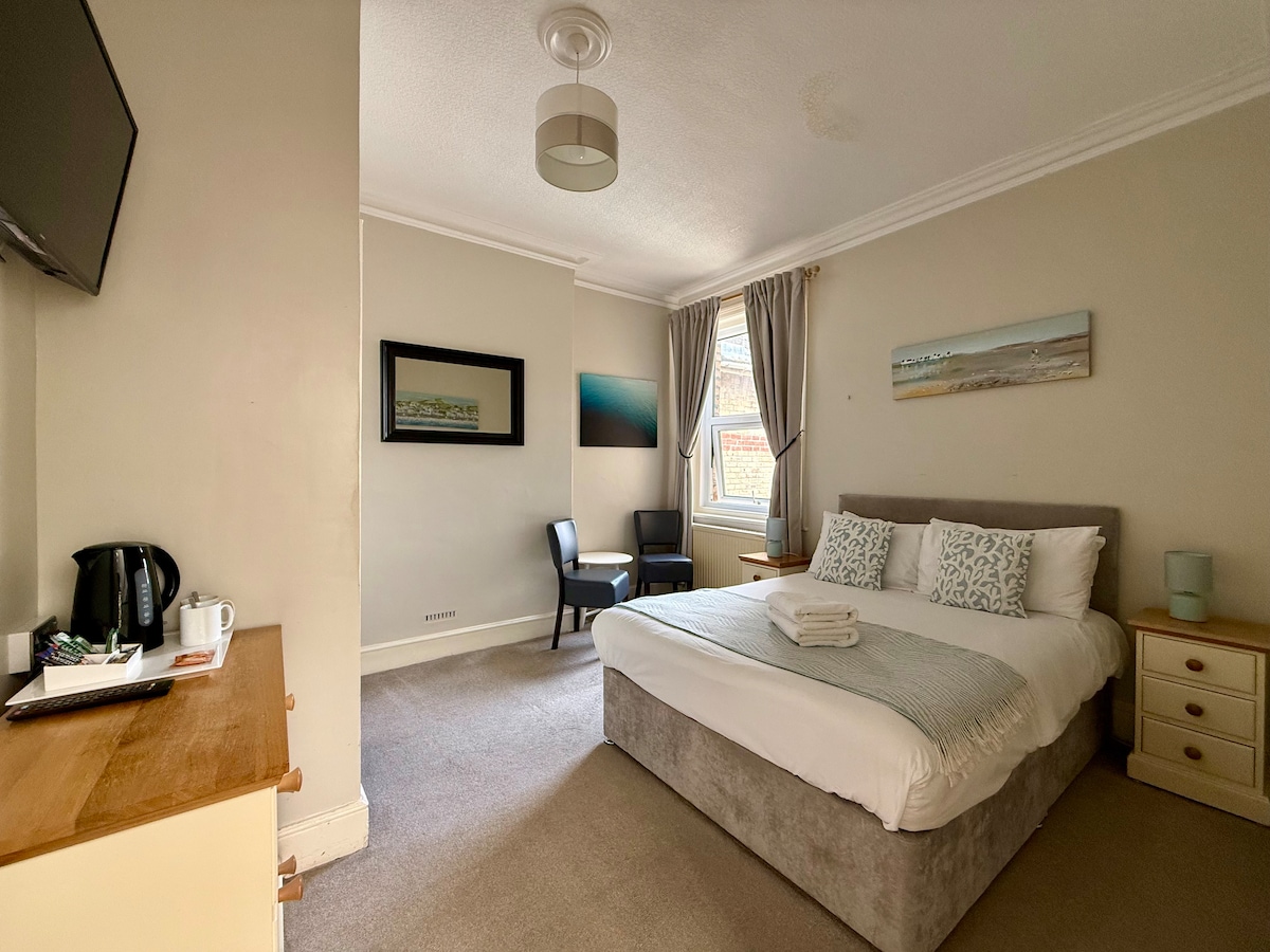 This single (small-double!) room with en-suite toilet and shower is ideal for a solo stay or even a couple. This room is located on the first floor with overlooking views to the Alexandra gardens and sea view. At the Alexandra we also offer a continental breakfast for £4.95 with pastries, fresh bread, cereals and unlimited tea and coffee.