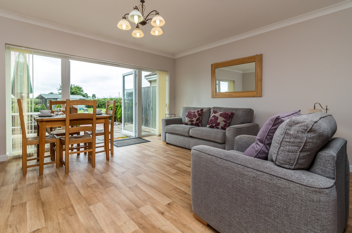 Couples hideaway, entirely your own space in a quiet friendly village. Private driveway parking, entrance with steps, situated over owners garage. Covered patio area with table, chairs, views of countryside. Key safe entrance via patio doors into living/kitchen area, sofa, table and chairs. Separate bedroom with king size bed, bedside drawer units, chest of drawers and large fitted wardrobe. Separate shower room with loo, basin and large shower. Smart TV, log in to Netflix, Amazon etc.