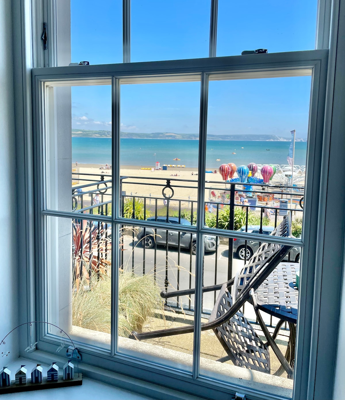 Watch the sun rise and night fall over the bay from this charming, central Esplanade, Georgian first floor apartment with free parking permit. Looking directly onto Weymouth's award winning beach and just minutes from Weymouth's picturesque harbour and town. A comfortable, light and airy living space offering a large sea and beach view balcony with seating. Ideal for couples. Superfast Sky WiFi.