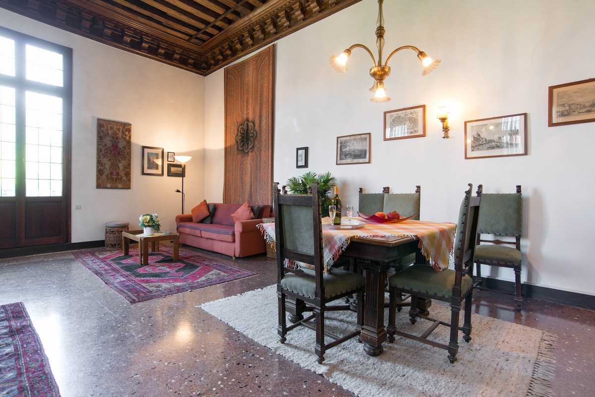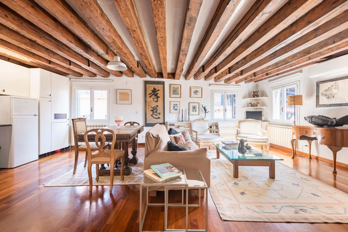 Elegant two-bedroom, two-bathroom apartment in perfect location. Located on the third floor of a building which dates back to the 1600s, the apartment is right in the heart of Venice and overlooks a typical campo (square) on one side, and a canal on the other side. It is located 5 minutes by foot from Rialto bridge (where the Airport shuttle docks), 9 from Saint Mark's Square, 15 from the train station and is surrounded by infinite lovely restaurants, cafés and shops.