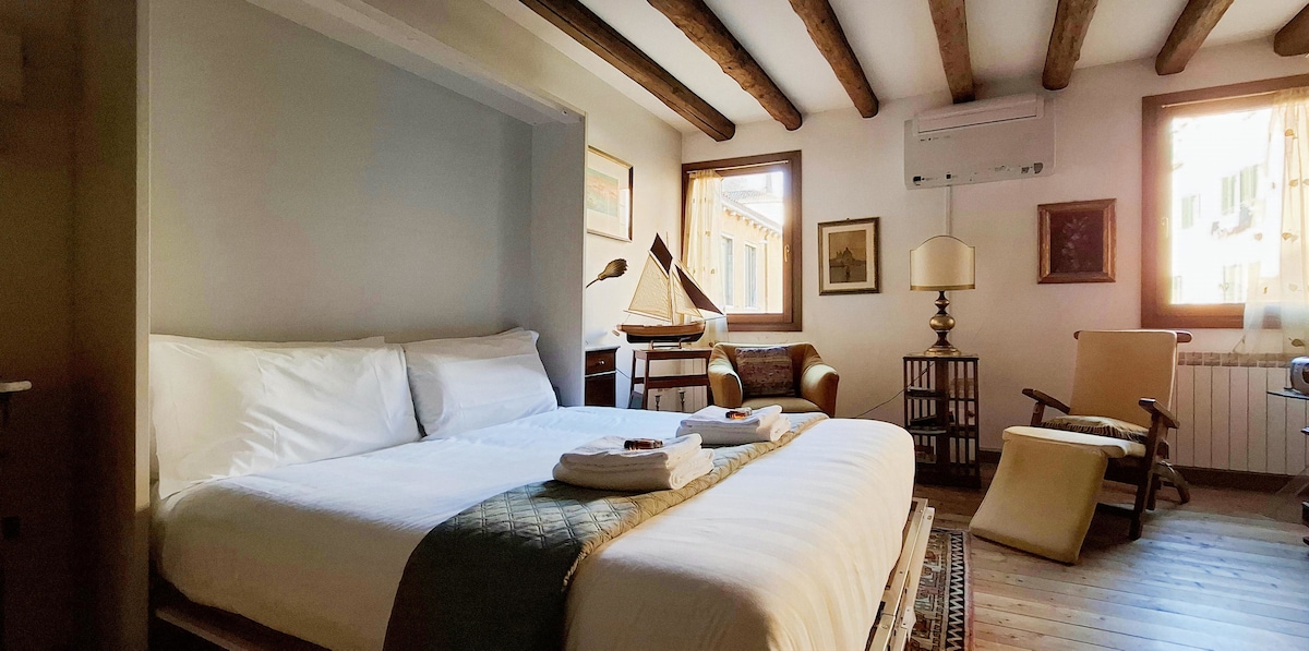 Cozy up with a book, have breakfast and dinner while admiring the incredible view of the bell towers and canals of Venice, live like a true Venetian in the most typical district of Venice a few steps from the Rialto bridge, Ca' D'oro and San Marco in a apartment finished with furniture and ornaments made by Venetian and Murano artisans. You will feel like you are experiencing the fantastic atmosphere of the 1800s but with all the comforts of a modern apartment. Don't miss this amazing experience
