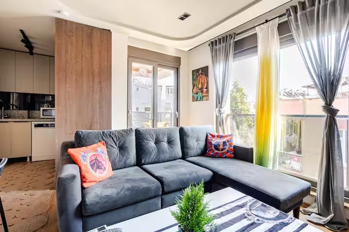 平均评分 5 分(满分 5 分),共 10 条评价1 +1套房,带新泳池,靠近Konyaaltı海滩