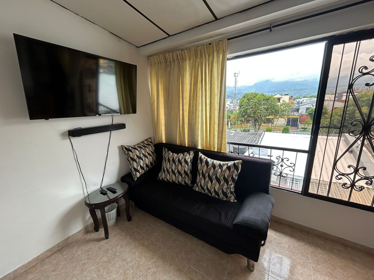 Close to 3 main avenues, public transportation half a block away, central area, 15 mins to Santa Rosa de Cabal or Pereira. -Cozy studio apartment with separate entrance. -Parking for motorcycles -Near public parking (car). -1'20" bed -Work space -Kitchen (rice cooker, waffle maker, refrigerator, among other items). Less than two blocks around you will find: bars, cafes and supermarkets (Ara, D1, Super inter). At 5 mins you will find the shopping center.