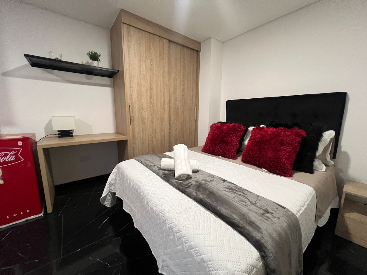 Ven y disfruta de un apartamento nuevo ya sea para ti solo,con tu pareja o con toda tu familia donde encontrarás: 1. Jacuzzi para dos personas dentro del apartamento. 2. Parque acuático con toboganes balde y piscina de adultos y niños. Jacuzzi Área de bronceo. 3. Estacionamiento vigilado y gratuito. 4. Chapa inteligente para ingreso automático. 5. Cama king 2x2 gigante para descanso absoluto. 6. Cocina amplia y dotada para las mejores recetas. 7.Cancha de baloncesto y micro futbol.