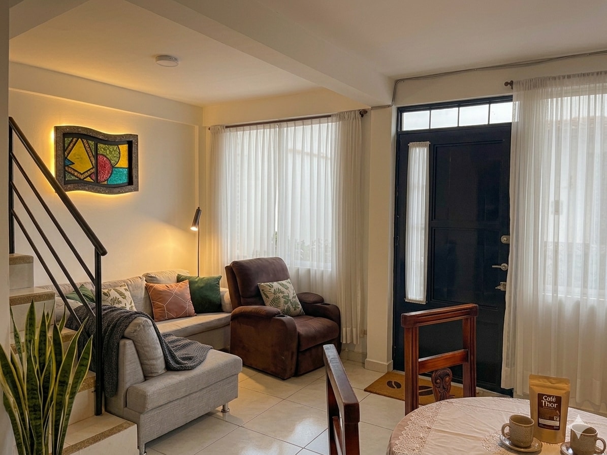 Disfruta de unas espectaculares vacaciones o grata jornada laboral mientras te hospedas en una comoda vivienda , cerca a sitios turisticos de la region, el cual cuenta con 3 habitaciones, 6 camas, sofa cama doble, barra, cocina equipada, cuarto de ropa con lavadora y plancha, 1 baño con ducha de agua caliente, 2 televisor smart tv con cuenta netflix, wifi y parqueadero privado.