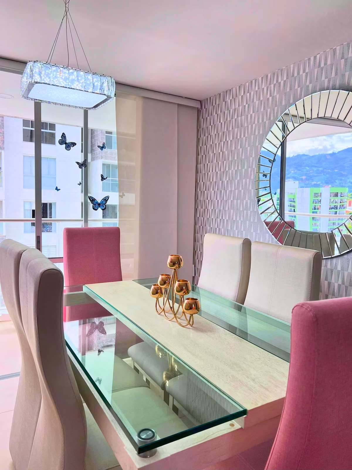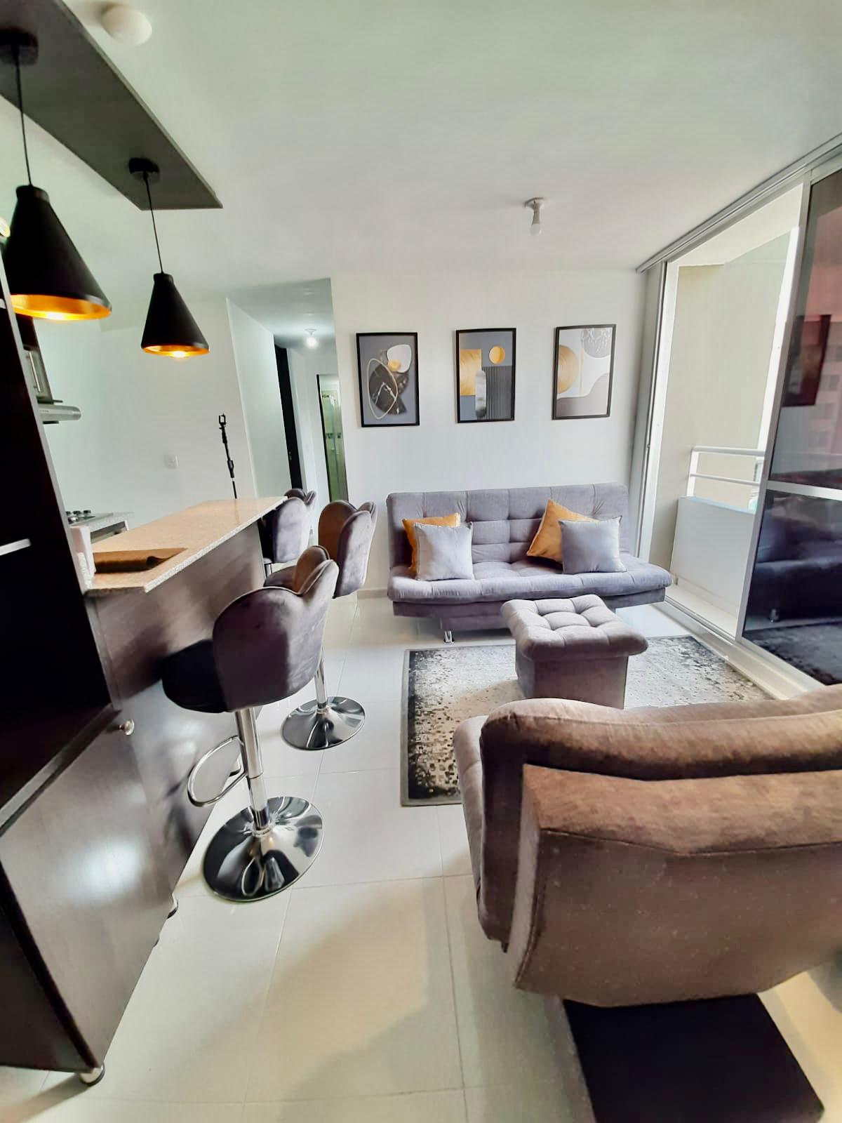 Descubre la comodidad y la placentera estancia en nuestro impecable apartamento Ubicado en un tranquilo conjunto residencial con vistas a las montañas, cada día será un paraíso al despertar. Disfruta de las comodidades que ofrecemos: piscina, cancha, parque infantil, lavandería, estacionamiento privado y vigilancia las 24h. El apartamento está equipado con todo lo necesario, incluido wifi, te hará sentir como en casa, incluso estando lejos de ella. Bienvenido a tu refugio de serenidad y confort.