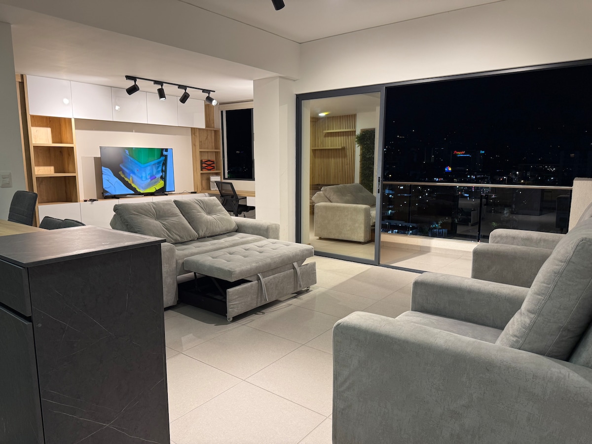 Apartamento con todas las comodidades en Pereira, ubicación privilegiada en la circunvalar, en edificio moderno, cerca al centro comercial Arboleda, al lado del "Club del Comercio", con aire acondicionado (Pereira es una ciudad de clima cálido), TV de 65 pulgadas, ventanas insonorizadas, cama queen, parqueadero cubierto privado y todas las comodidades para tu estadía óptima en el eje cafetero. Estratégicamente ubicado, a poca distancia de restaurantes, cafés, supermercados y vida nocturna
