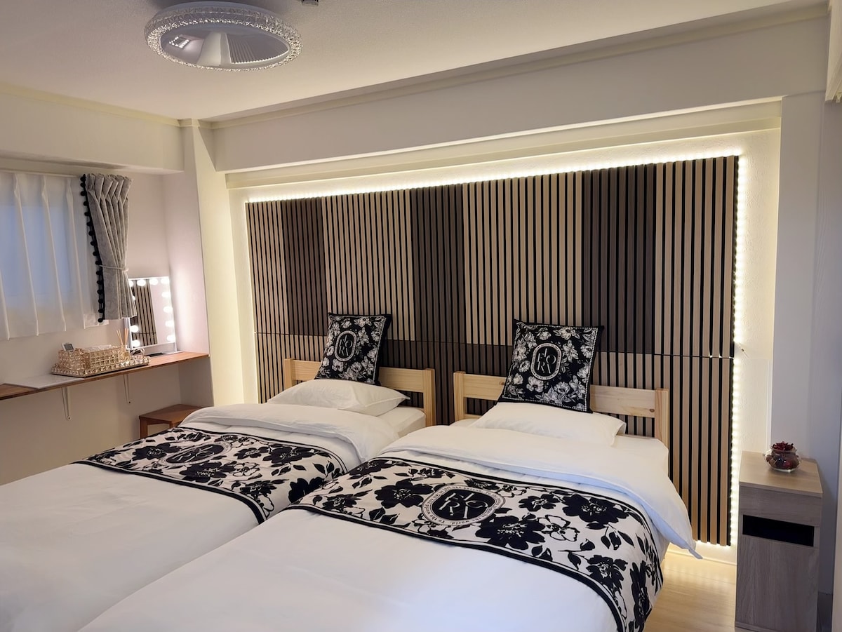 美国村步行1分钟|双人床 最多4人|心斋桥・难波道顿堀・橘子街|JR难波・地铁5分|中古&潮流&美食