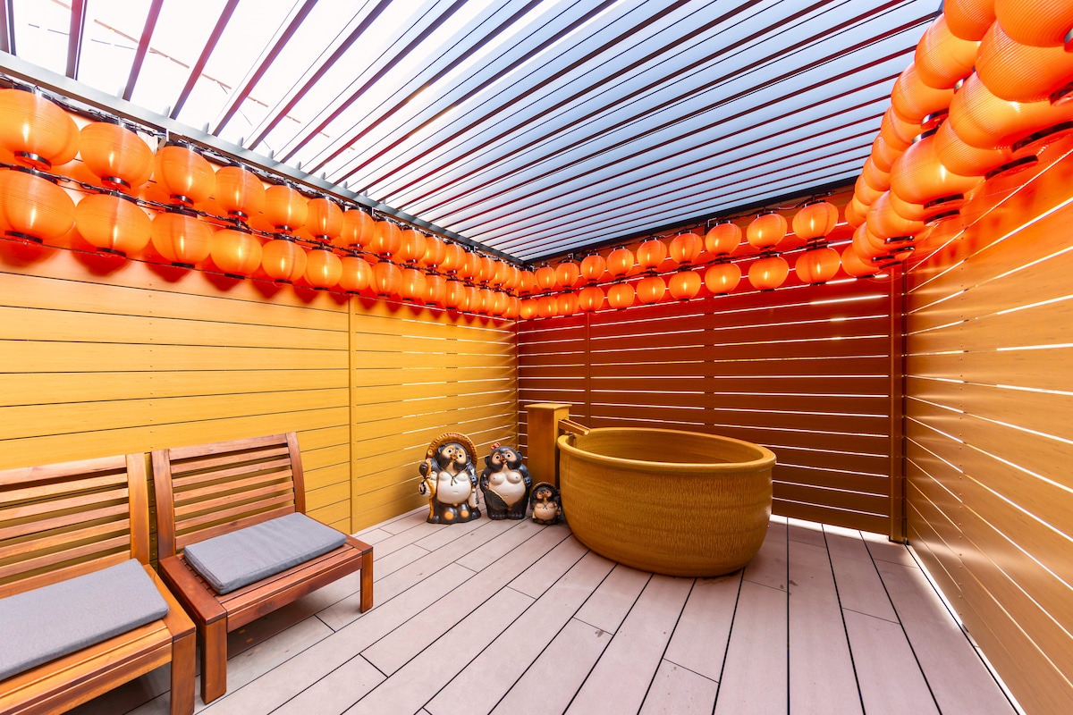心斋桥中心|私人空中庭院+泡澡|4卧120㎡|可住12人|3厕2浴|聚会首选