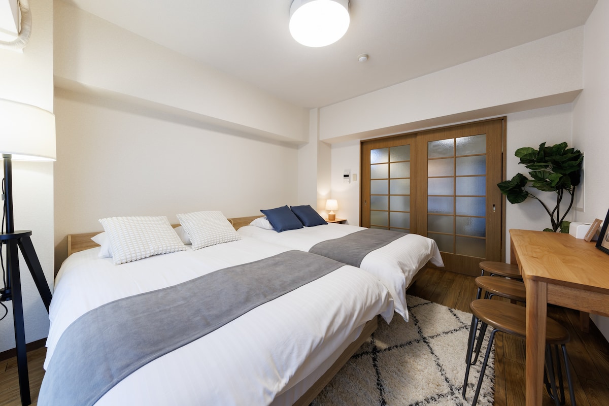川House難波南-花園町/难波心斋桥梅田机场直达/地铁站步行4分钟/两张双人床/32平米/可住四人