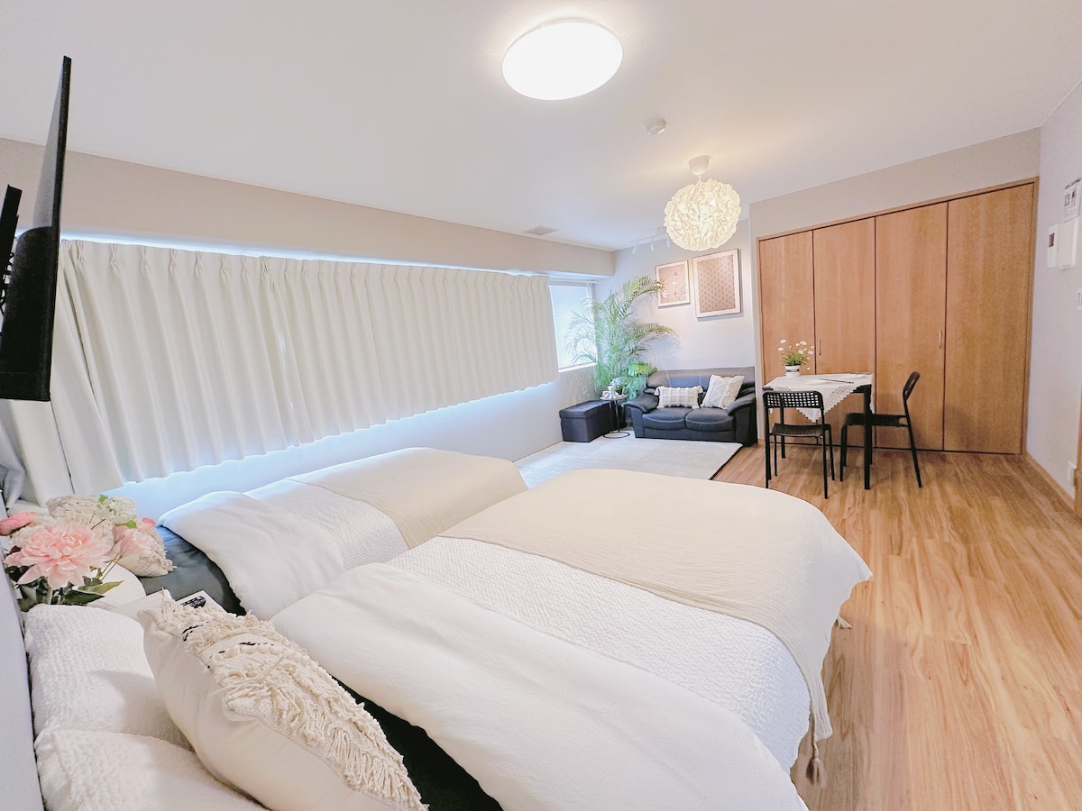 道顿堀新开业40平2卧室可住6人,徒步5分到达道顿堀,日本桥,黑门市场,8分到达心斋桥,难波