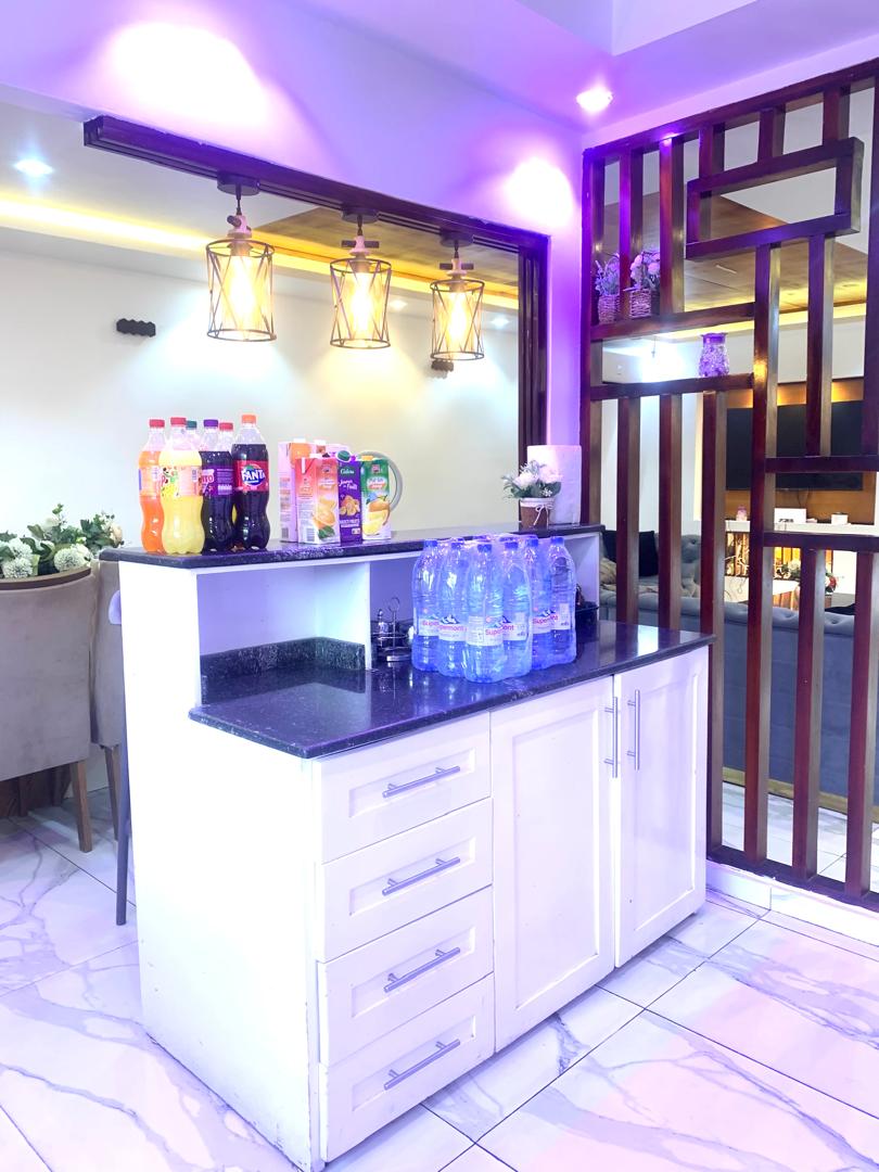 Chambre meublee luxueuse situee au coeur de la capital economique sur Rue Njo-Njo Bonapriso Douala en face de la station d'essence MRS a 2 juste mins de l'hotel la Falaise Bonapriso. Espace unique et memorable pour vos sejours dans un cadre tres propre et reposant. Climatissee - Chauffe-Eaux - Hyper-securisee - TV - Free WIFI- Free Parking nous offrons Pizzas - Boissons - Restaurant - Cuisine - Frigo - Microonde - Salle de sejour pour votre confort. La reception est ouverte 24/7