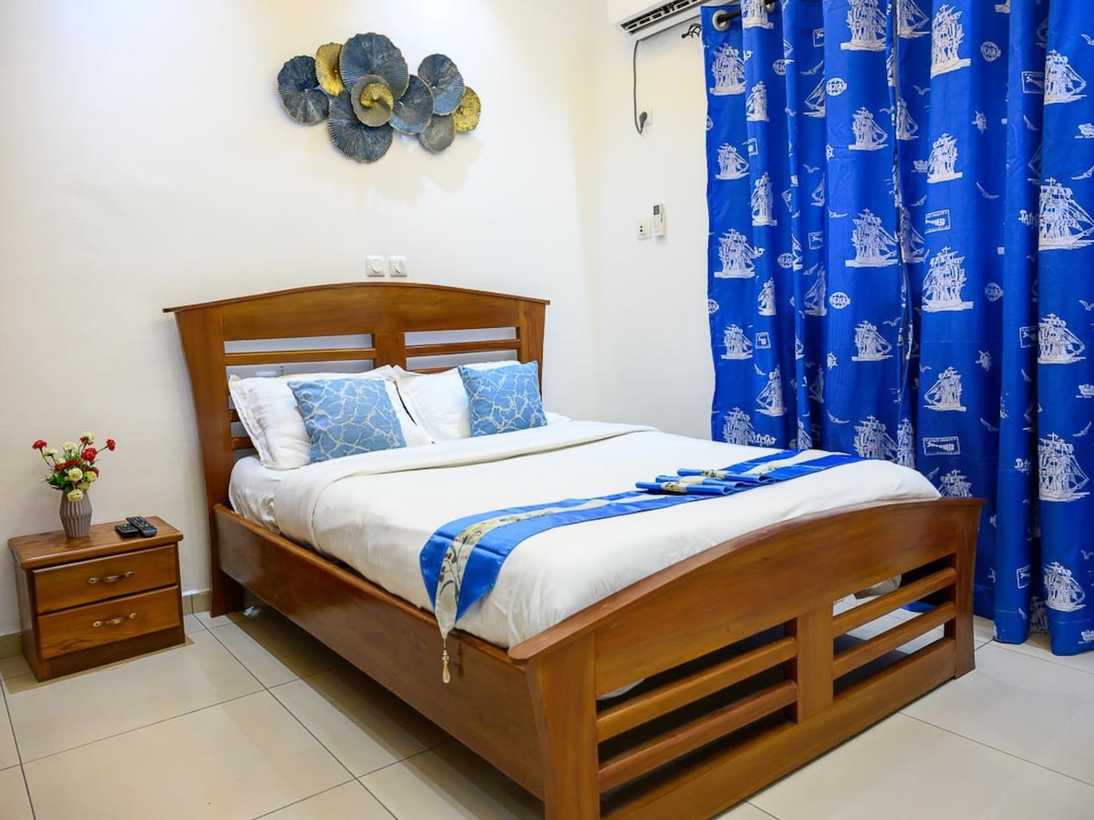 Bienvenue à Villar Nouss, votre base idéale pour des séjours courts à Douala. Situé juste à côté de l'Hôpital Général, notre chambre confortable offre un accès facile aux principales commodités locales, telles que les supermarchés Santa Lucia et Carrefour. Parfait pour les voyageurs, nous sommes idéalement placés près des principaux quartiers d'affaires comme Bonamusadi, Akwa, Bonanjo et Bonaberi. Profitez du confort et de la commodité dans un quartier dynamique et accessible de la ville.