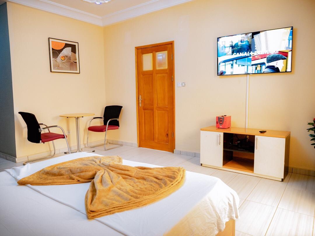 Ce logement paisible offre un séjour détente pour toute la famille. il procède des chambres d'hôtes, des studios et appartements pour court et long séjour. les plus : TV smart connectée à Internet, wifi, eau chaude dans les logements, gardien H24, parking avec caméra de surveillance, groupe électrogène en cas de coupure d'électricité,proche de l'aéroport,