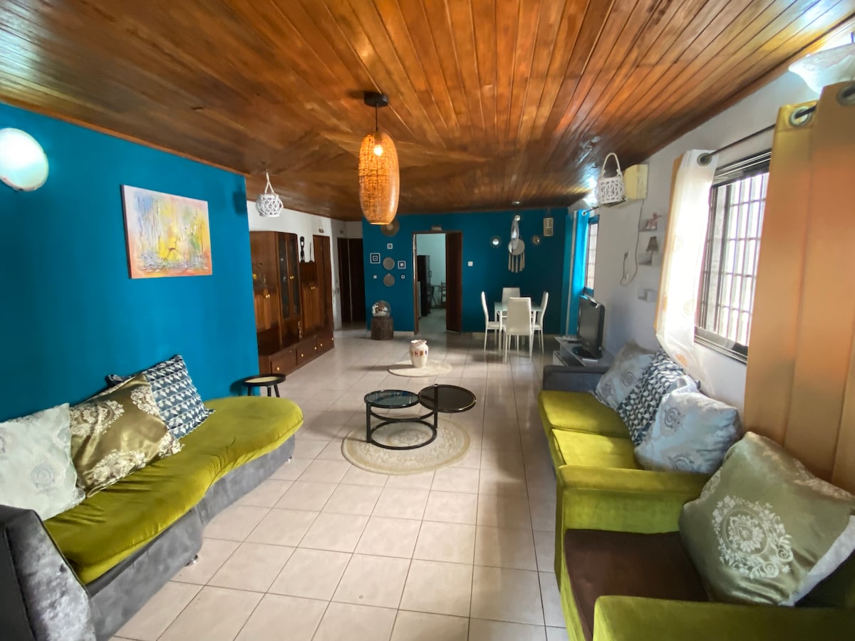 Un espace Cosy de 95m2 situé à PK11 (Douala)dans une barrière avec gardien de sécurité. La maison est climatisée (salon et chambres). La cuisine est entièrement équipée (micro-ondes, réfrigérateur, cuisinière, chauffe eau, ustensiles de cuisine...). Une salle d'eau et des toilettes séparés. Tout le confort nécessaire pour vous sentir comme "à la maison". Vous pouvez profiter de la terrasse pour un petit-déjeuner, déjeuner ou dîner en toute tranquillité...