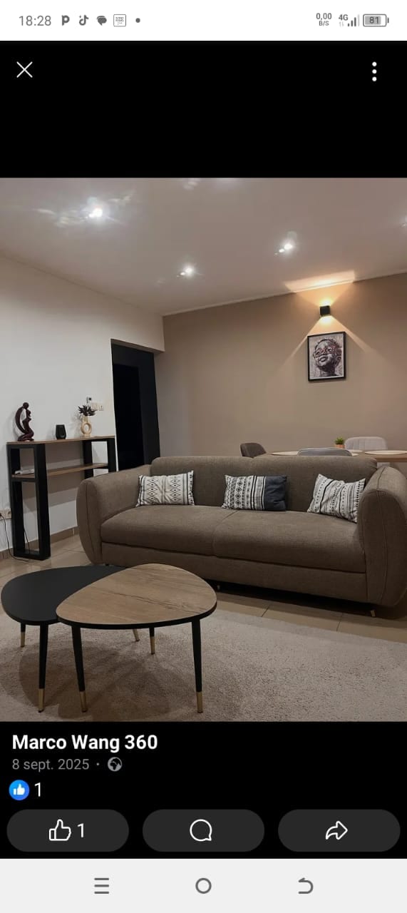 GROUPE ÉLECTROGÈNE Bienvenue chez nous où confort et luxe se rencontrent pour vous offrir un séjour inoubliable ! Vous résiderez dans l’appartement A d’un immeuble Cosy et calme, idéalement situé près de la route et du centre-ville. Climatisation ds tout le logement. Cuisine équipée, 2 chambres avec sdb, eau chaude, charmant living, terrasse et coin repas. Parking gratuit, WIFI, TV canal +, IPTV, concierge 24h, Compteur électrique PRÉPAYÉ à recharger Nombreux commerces à proximité