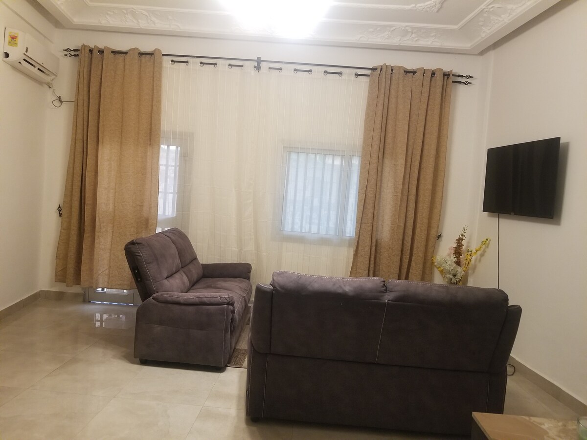Ce logement est hyper propre, climatisé et nouvellement aménagé. Ceci vous permettra de vous sentir comme chez vous. L'appartement est situé à quelques mètres d'un supermarché de renommée, facilitant vos achats. Une dame de ménage est mise à votre disposition éliminant vos soucis de tâches ménagères.