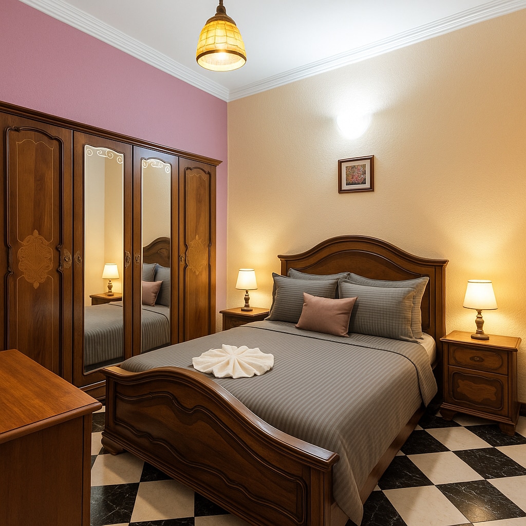 Séjournez en plein cœur de Marrakech dans notre appartement 2 chambres et 2 salles de bain. Profitez d'Une literie Simmons haut de gamme, WiFi haut débit (fibre optique) et d'une décoration moderne avec un bassin privé. Cuisine entièrement équipée, baignoire élégante, et douche italienne. À quelques pas de la place Jemaa el-Fna, du Plazza, et du Carré Eden. La piscine n’est pas chauffée. NB: Les couples marocains non mariés ne sont pas autorisés.
