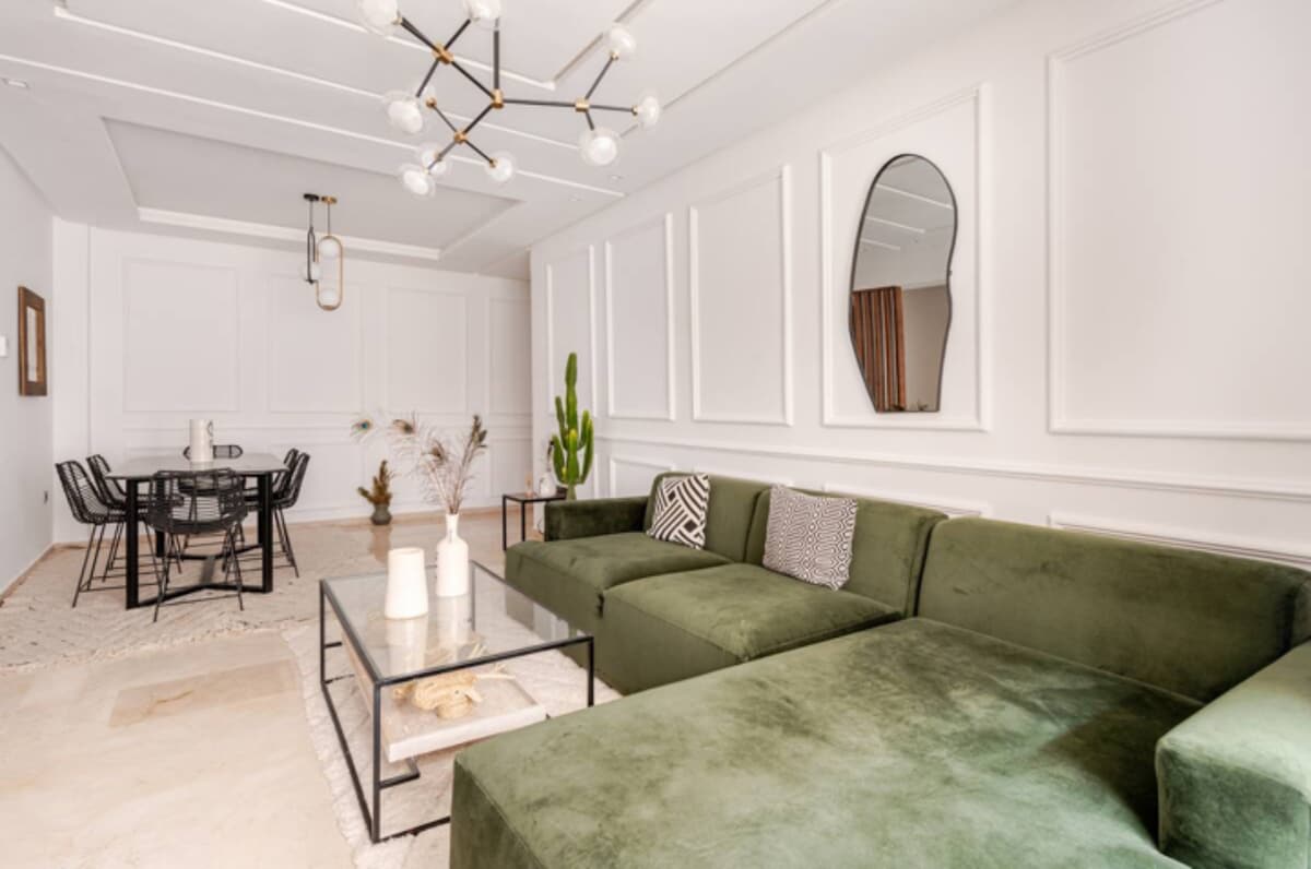 Profitez de cet appartement neuf et entièrement équipé, idéalement situé en plein centre de Marrakech. À seulement 5 min de la gare, 10 min de l'aéroport, et 15 min de la médina et des meilleurs restaurants et activités de la ville. Tout le confort nécessaire : une grande TV, un salon super confortable, une cuisine équipée, une machine à laver, un balcon et un parking gratuit. Un cadre calme et central, parfait pour explorer la ville.