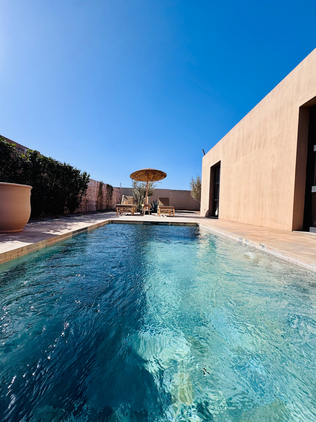 🌴 Villa Oxygène – votre oasis privée à Aghmat. Profitez d’une piscine sans vis-à-vis avec espace enfants, d’un grand jardin, d’un trampoline 3 m et d’une balançoire. Idéale pour les familles, la villa offre climatisation, Wi-Fi et possibilité de cuisinière sur demande. 📍À 35 min de Marrakech et de l’Ourika, proche de Smile Park, Aqua Parc et restaurants. ⚖️ Conformément à la loi marocaine, acte de mariage obligatoire pour les couples marocains.