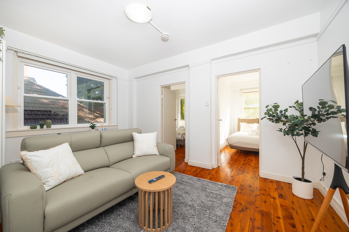This designer apartment is newly renovated and positioned on the top floor facing N/E nestled amongst the tree tops with ocean glimpses on the horizon. A quiet and private location with free street parking and only a 10 minute walk to the beach. Enjoy Charing Cross with its boutique shops, cafes, restaurants, pubs and public transport. Bondi junction Westfield and train station is an easy 20 minute walk. Busses are available from nearby streets. *Not suitable for children and infants.