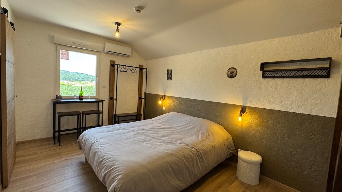 Bel appartement de 60m² refait à neuf avec pierres apparentes et cheminées du XVIème. Convivial, chaleureux et contemporain à la fois avec tout le confort moderne. Vous y trouverez : cuisine équipée ouverte sur un salon confortable et spacieux avec TV et Wifi. Chambre séparée avec 1 lit de 160, salle de douche avec sèche serviette. Entrée, parking et terrasse privatifs. Bois fournis.