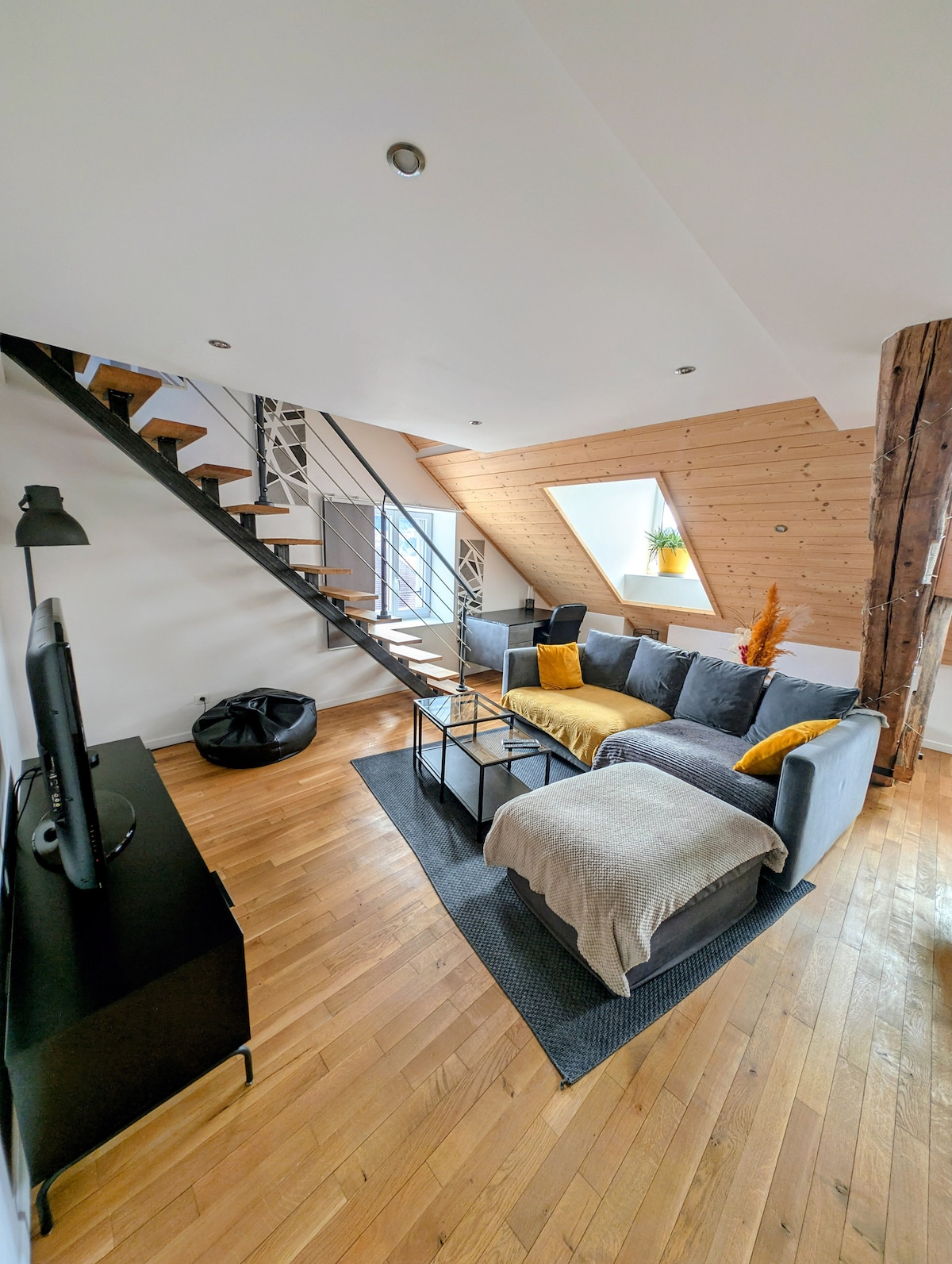Une véritable évasion au dernier étage : Appartement cosy avec petit balcon et vue imprenable ! Bienvenue dans notre ravissant appartement niché au dernier étage d’un immeuble de caractère plein centre ville, où le confort moderne se marie harmonieusement au charme de l'ancien.