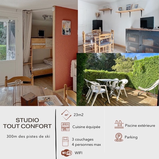 Venez apprécier ce chaleureux chalet conviviale et confortable, situé à la station de Métabief. C’est un havre de paix, idéal pour se ressourcer, se reposer et passer des vacances inoubliables. Métabief est une station familiale qui propose une multitude d’activités en plein air : accrobranche, escalade, luge d’été et d’hiver, VTT avec ses pistes de descente ou d’enduro, balade à cheval, parapente, chemins de randonnées et bien sûr ski et balade en raquettes l’hiver.