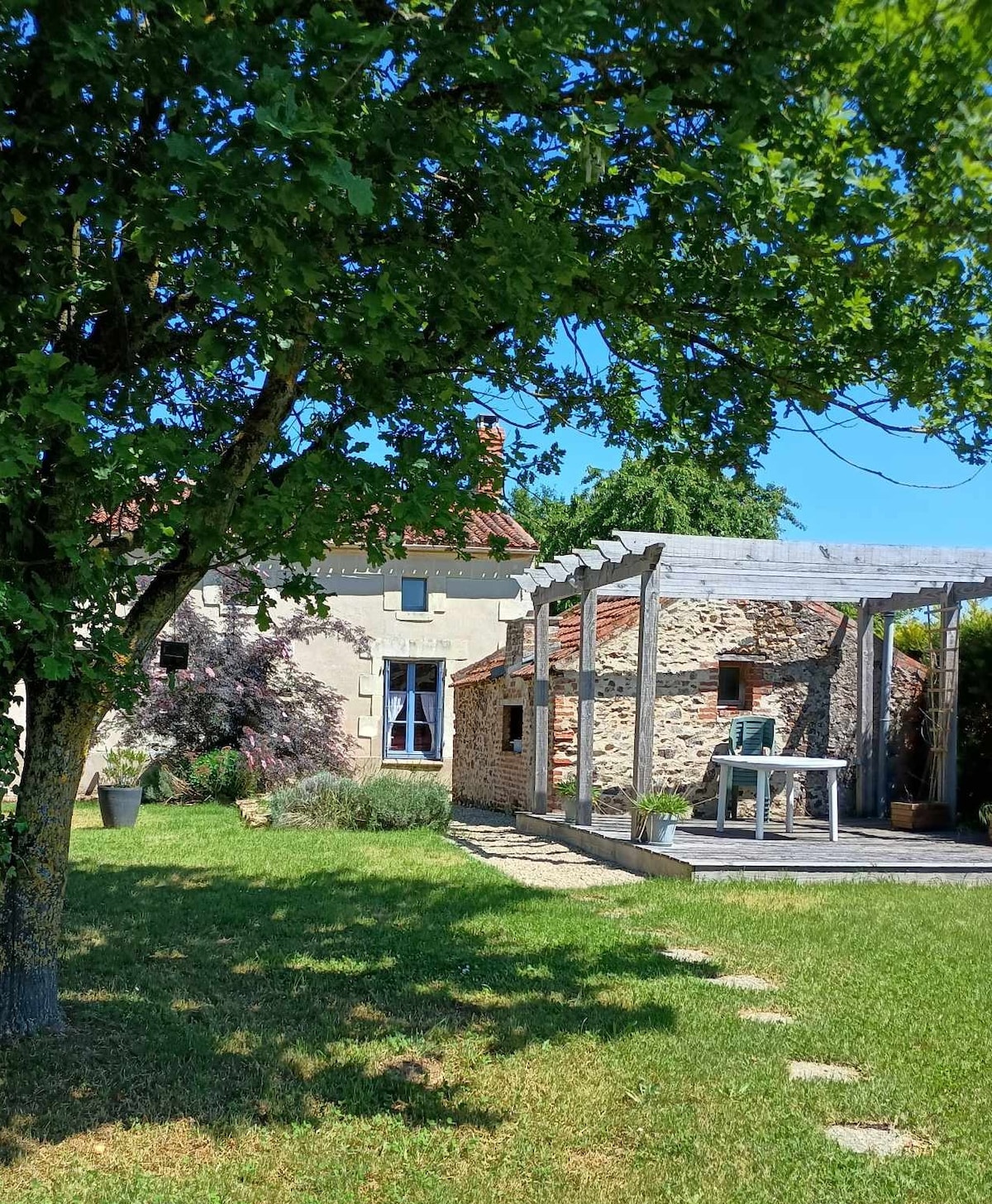 Gîte de charme avec cheminée classé 3 étoiles avec un grand jardin fleuri et boisé de 1200 m2. Sentiers GR devant la maison, le gîte est idéalement situé entre ANGERS et SAUMUR. Venez faire une halte bucolique dans notre jolie gîte du 16eme siècle, entièrement restauré avec ses pierres apparentes. Il est situé dans un village des bords de Loire classé « village de caractère ». De la maison, à pieds ou à vélo, découvrez les bords de Loire, le vignoble, les forêts de chênes et châtaigniers.