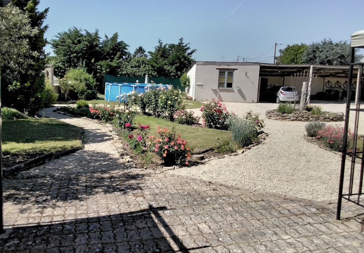 En déplacement professionnel ou personnel, venez séjourner dans notre logement neuf tout équipé. Situé à Saint Barthelemy d'Anjou, vous profiterez du calme et d'un environnement boisé à proximité des commerces et du parc des Expo d'Angers. Nous sommes également à 10 min de Terra Botanica parc du vegetal et 50 min du Puy du Fou. Le studio bénéficie d'un accès privatif sur le côté de notre maison sans aucun vis à vis. Possibilité de garer gratuitement votre véhicule sur la rue principale.