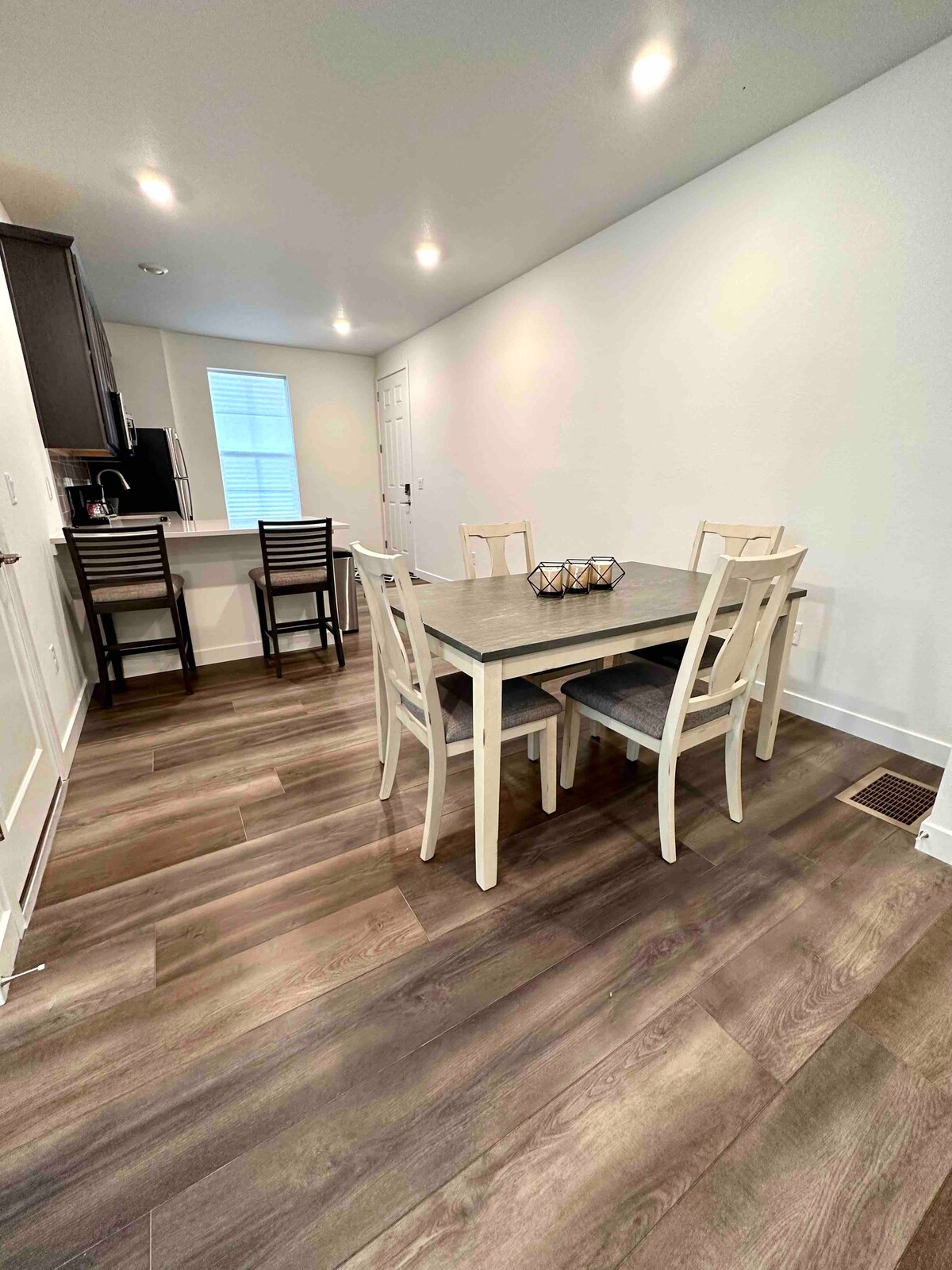 Modern 1 bedroom apartment built in 2021. Located in downtown Castle Rock. Walking distance to restaurants,events,walking paths and parks. Street parking available in front of the property. AC. Inside is a full kitchen with essentials including coffee, cream, dining table & chairs. Full laundry with 2 pods provided. 1 bedroom with a queen bed, TV for streaming & elec fireplace & walk in closet. Main room has sofa/pull out queen bed and a recliner. Full bath with soaps. Sleeps 4
