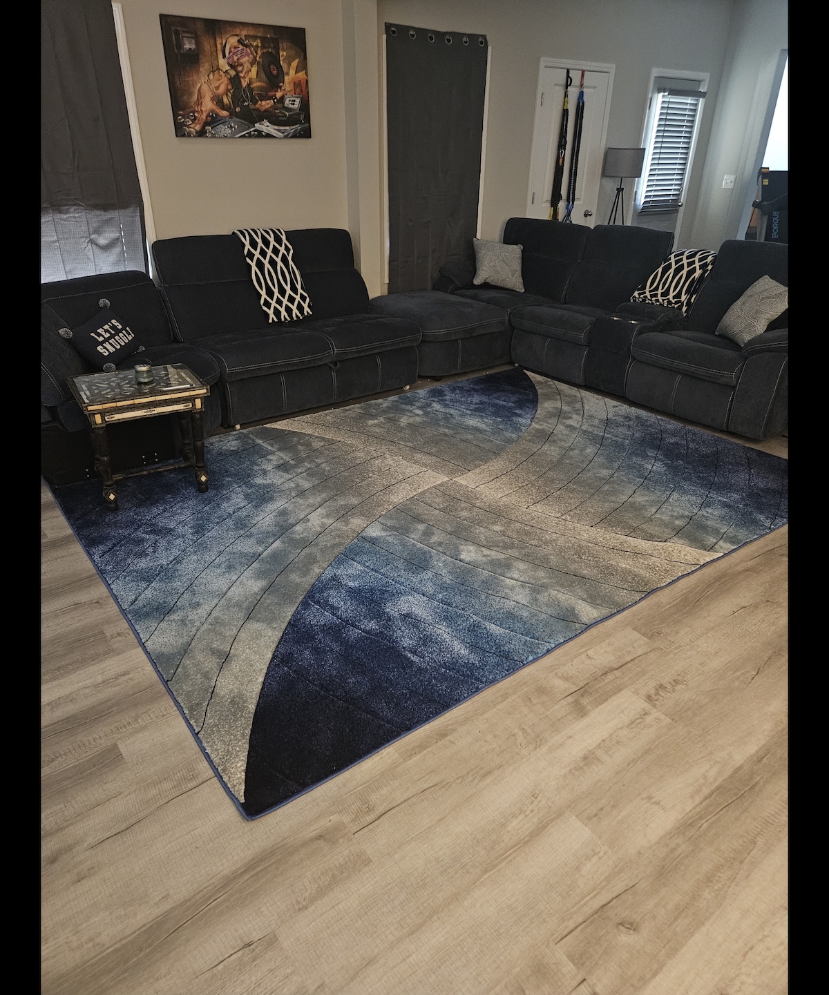 Cyberpunk basement apartment. Features 2 dark bedrooms, colorful lights, neon led signs & a very neat epoxy floor. 2 large remote projector screens, work space, luxury vanity, smart toilet w heated bidet, tile shower, 4 seat bar, kitchenette w airfryer, microwave, toaster, hotplate, keurig, patio table & backyard. Close to Sweetwater State Park. No stove, kitchen sink, washer or dryer. HVAC controls are locked in a box. Apartment shares a wall with another renter & the host lives upstairs.