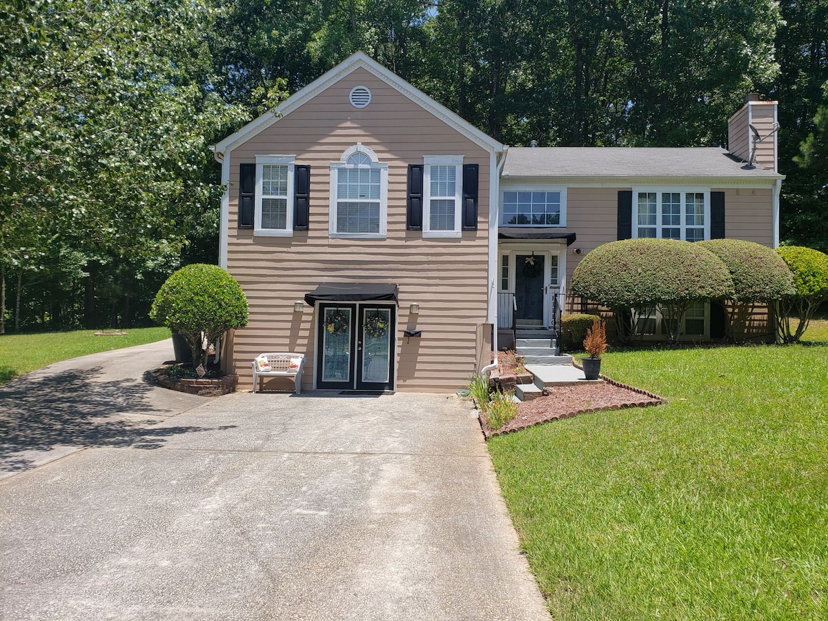 Spacious suite with private entrance, scenic backyard, and serene fire-pit. Cozy for couples, roomy for a family of 5, with every comfort at your fingertips. Just 10 min to Six Flags, 20 to the airport, and 30 to Atlanta. Turn your short-term stay into a long-term impression of luxury, privacy, and convenience.