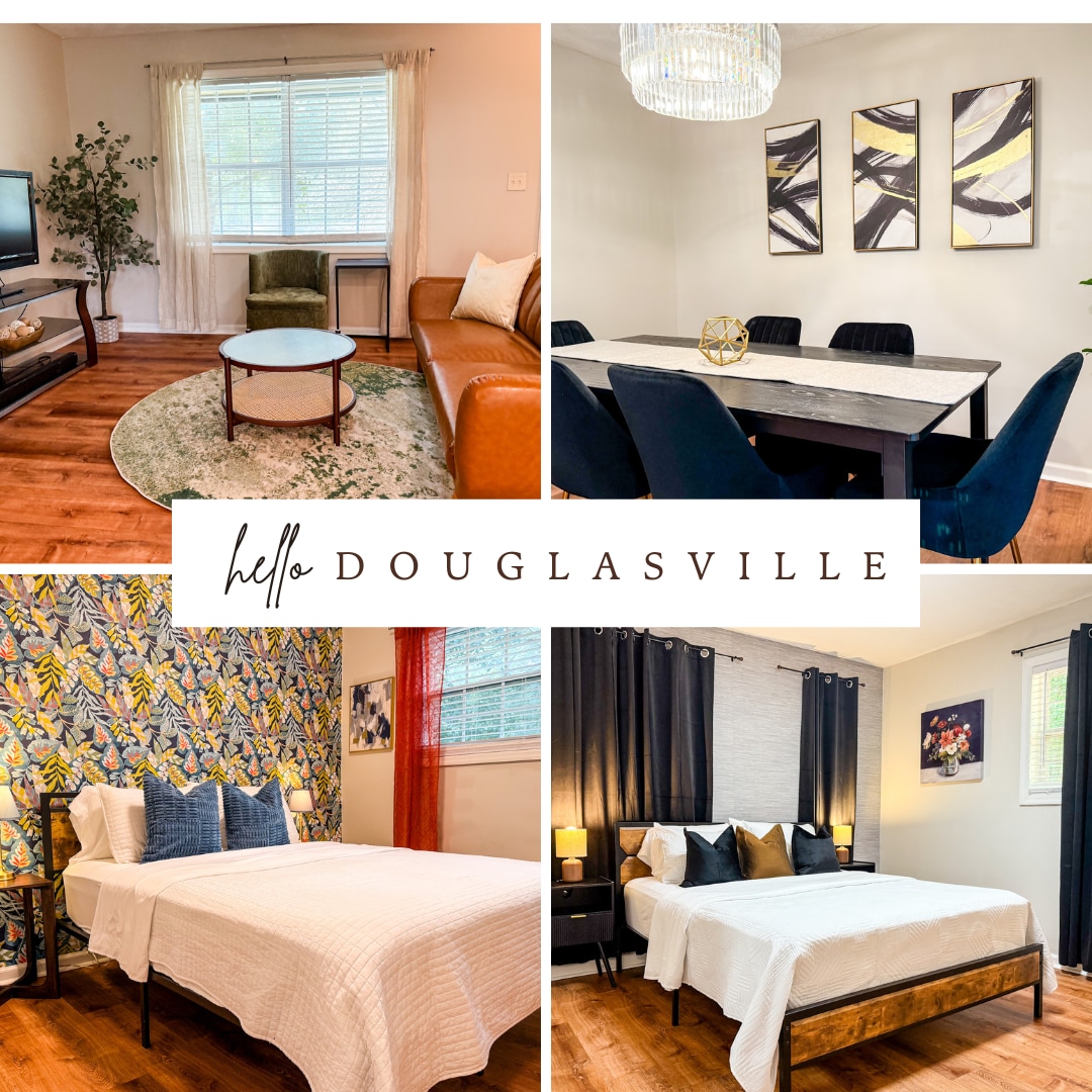 Nestled in the charming community, just minutes from the vibrant city of Atlanta, our spacious four-bedroom home is the ideal retreat for families, friends, or anyone looking to explore the area. Whether you're here for a weekend adventure or an extended stay, this home combines comfort, convenience, and fun! Location couldn’t be better! Close to I-20 for easy travel to Atlanta, and also just minutes from popular attractions like Six Flags Over Georgia and Arbor place mall.