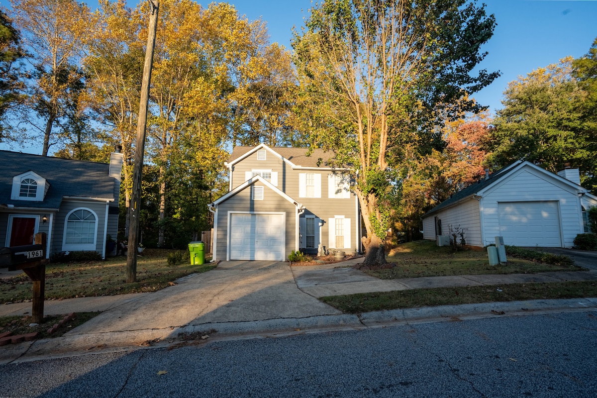 Comfortable 3BR, 2.5BA home near ATL airport and downtown. Family and pet-friendly with a fenced yard, laundry room, fully stocked kitchen, and extras like a portable crib and baby gates. Golf cart included for exploring the neighborhood. Great for a home-away-from-home relaxing getaway or as a home base while you explore the city! 14 miles from Hartsfield-Jackson Atlanta Airport 25 miles from Georgia Aquarium 23 miles from Mercedes-Benz Stadium 3.5 miles from Georgia Renaissance Festival