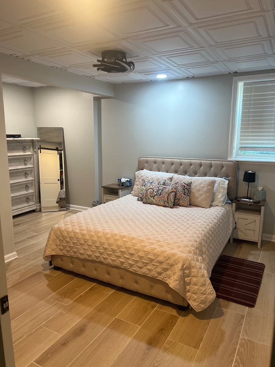 This spacious 1,000+ sq. ft. BASEMENT APARTMENT features a full kitchen, in-unit laundry, and your own entrance. Relax with multiple lounge areas and TVs, including a projector for a movie theater experience. Location Highlights: • 15 minutes to Camp Creek Marketplace (shopping & dining) • 20 minutes to Hartsfield-Jackson Airport • 30 minutes to downtown Atlanta Guests also have access to the subdivision park, pool (Memorial Day–Labor Day), and extra parking directly across the street.