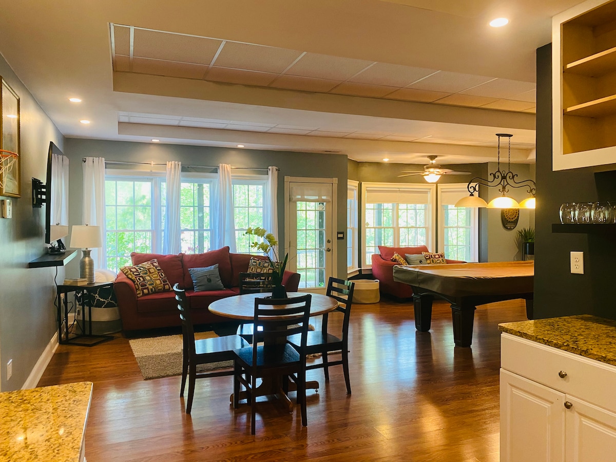 Experience a luxurious stay in this newly built guest suite with wonderful amenities including a high-end pool table and bar area! The suite is attached to a house occupied by the host, however the suite is private to you and is not shared. Enjoy a hot beverage on the patio while enjoying a calming wooded view. Whether you are looking to spend a weekend away for leisure or business, you will find this suite to be very welcoming and cozy! Get to Atlanta's favorite spots easily from this location.