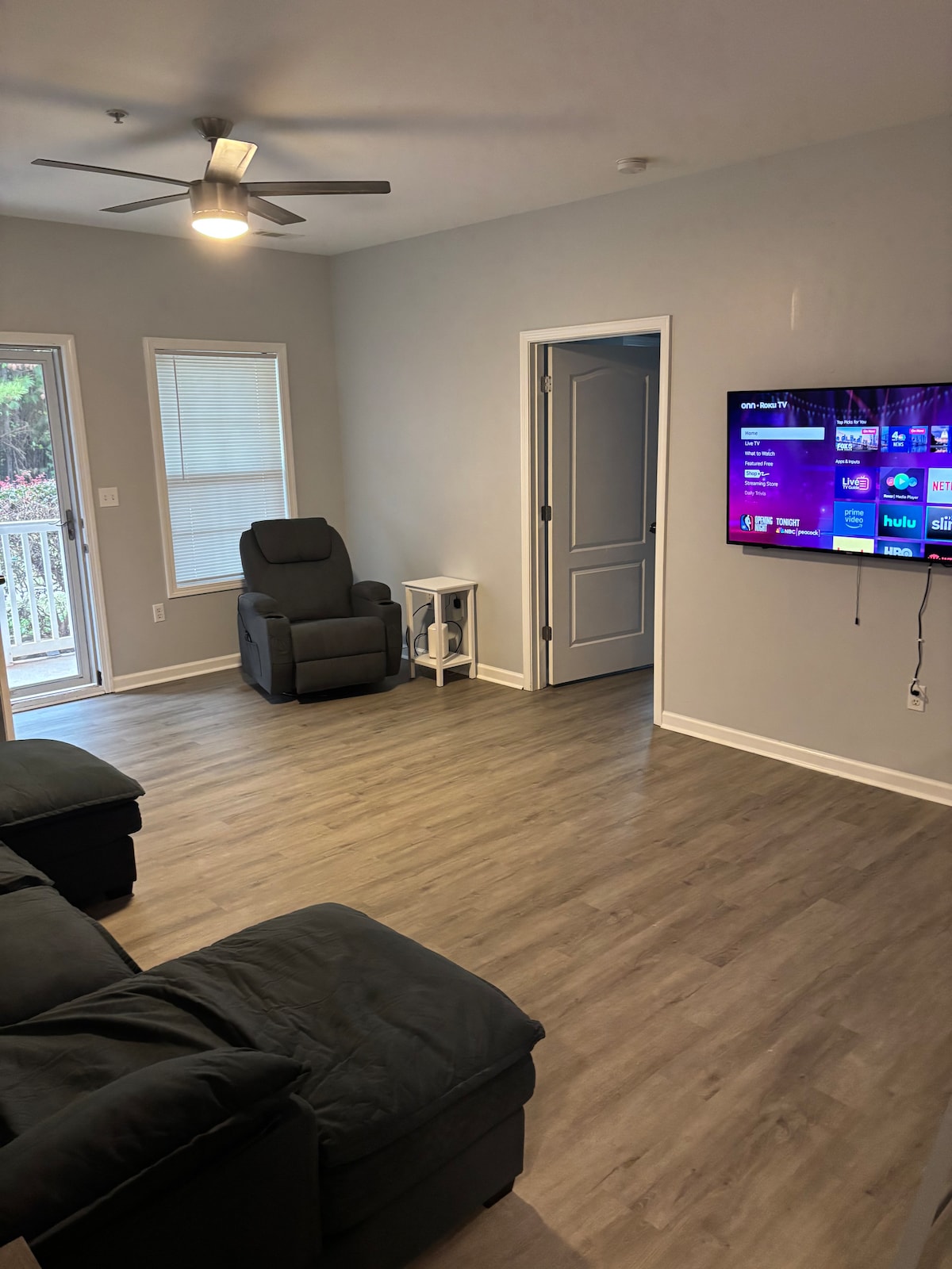 This apartment is attached to a Three levels-style solar powered home, with the apartment being in the basement, but has its own entrance, separate from the main living quarters. The property is located in Fairburn, GA, 20 mins from the downtown & 12 mins from the Atlanta International Airport. If you are a person that works with movie sets here in Atlanta, our home is only 5 mins from Atlanta Metro Studios & 20 mins from Tyler Perry Studios. ---- Click my profile for other listings I have.