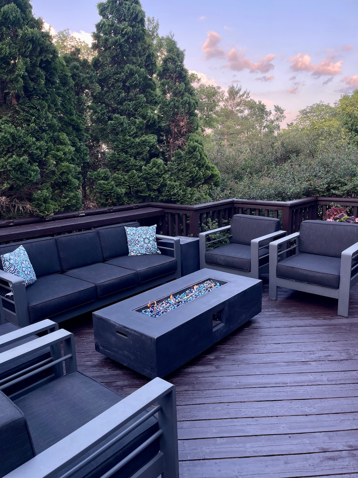 Escape to our Charming Guesthouse a perfect blend of comfort and relaxation. Step outside to enjoy a peaceful patio with a soothing waterfall. Stay comfortable A/C and heating, and cozy up next to the beautiful fireplace. High-speed Wi-Fi and a large TV are provided for your entertainment. On a fenced 3/4 acre lot, access to an outdoor firepit perfect for evening relaxation. Located in the heart of Omaha, you’ll enjoy full city access while still retreating to a peaceful, private setting.