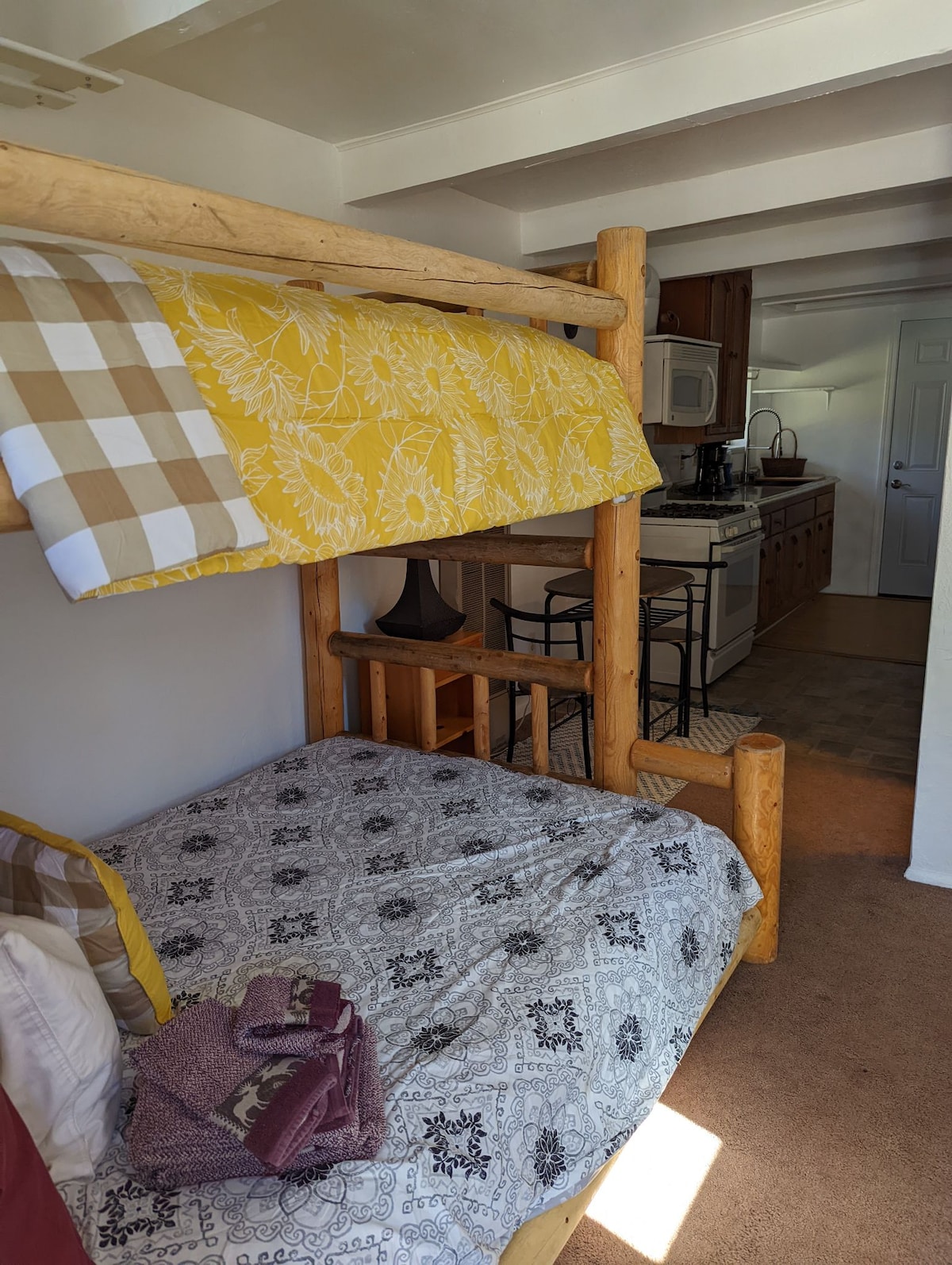 Read entirely before booking. Luxury Marriott studio with queen bed and padded chair. Extra people are allowed to provide their own sleeping space on the floor. Marriott will not supply additional bedding. Full kitchen. Dining table for 2. Hot tubs, heated pool, sauna, workout, relax by the fire. World class Marriott accommodations. You are required to pay a $135 cleaning and $45/nt valet parking fees (if used) at check out. Read parking details. Your booking means that you agree to this.