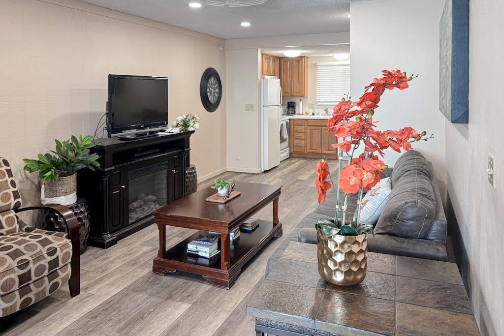 Boasting one of the best locations in South Lake Tahoe, this 1BR/1BA condo accommodates 4 guests. Guests have access to all village amenities, including private beach and pier, swimming pools, hot tub, sauna, fitness center and children’s play area. Only a quick walk to the shores of gorgeous Lake Tahoe (guests can use our fun lake gear) Heavenly is a 3-mile drive straight up the road from our complex. You will be close to everything when staying at this centrally-located property.