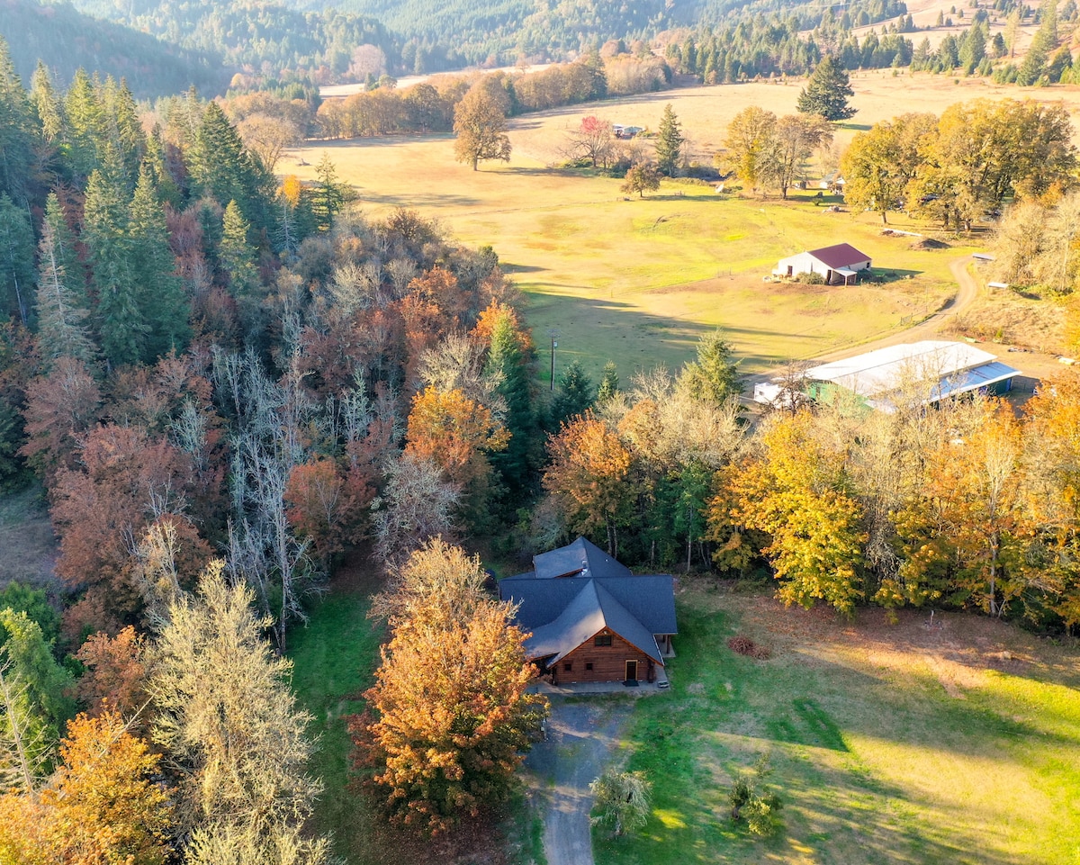 Escape to our peaceful 9-acre farm in the southern Willamette Valley, surrounded by fresh air, nature, and the sound of nearby rivers. This 590 sq ft attached private studio suite features a cozy queen bed, pellet stove, kitchenette, full bath, & a private fenced backyard with patio seating and pasture views. Pet- and kid-friendly with a private keyed entry and free front-door parking—your perfect countryside getaway awaits.