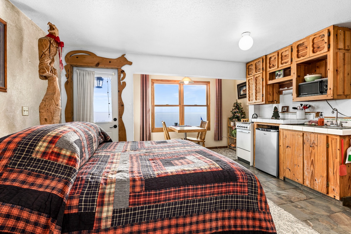 Immerse yourself in nature with breathtaking Lake Superior views while still being just 10 minutes from downtown Duluth and Spirit Mountain. This cozy retreat features a handcrafted queen bed, private balcony, and a warm, rustic atmosphere. Enjoy access to The Inn on Gitche Gumee’s shared fire pit, outdoor dining area, and scenic seating spots—perfect for summer relaxation. A peaceful escape that blends old-world charm, natural beauty, and the tranquility of the North Shore.