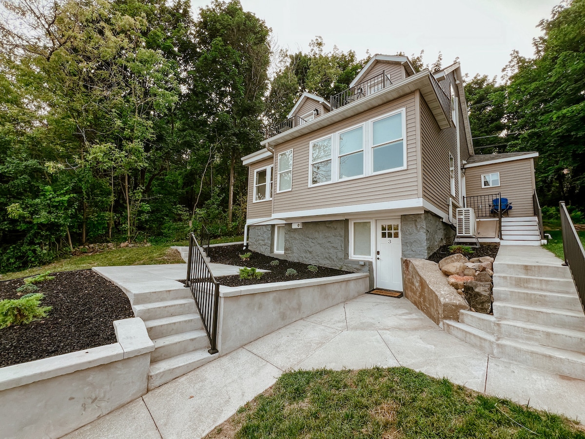 步道、露台和海湾景观!舒适的壁炉!