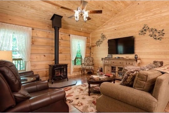 ❗️CALLING ALL COUPLES❗️ Kick back and relax in this calm, stylish cottage that is just perfect size for a Honeymoon getaway, Couples Retreat, Small family or for a SOLO Traveler. This Couples Retreat is a fully furnished 1 bed, 1 bath studio log cabin. The main living area has a kitchen, dining table, 37” Roku Smart TV, king bed, and a sofa bed. It is conveniently located between Douglas Lake and all the attractions in Sevierville, Pigeon Forge, Gatlinburg and Smoky Mountain National Park.