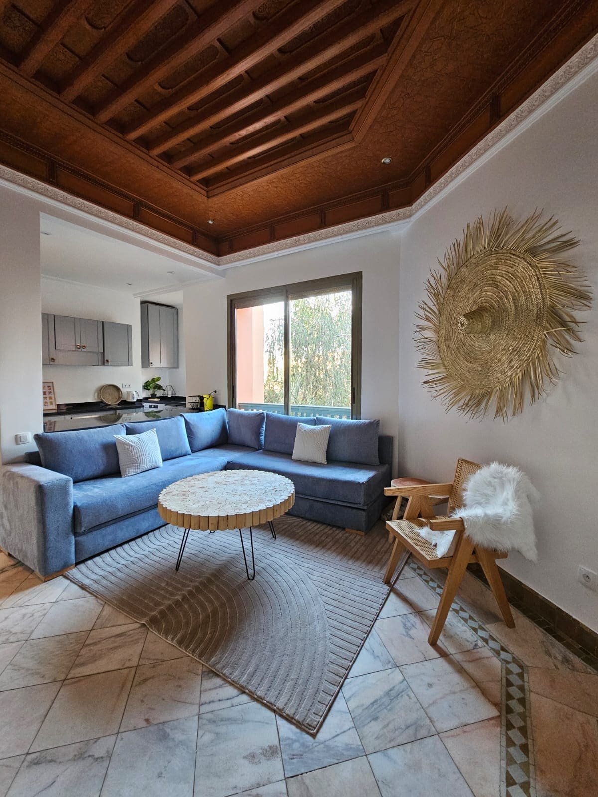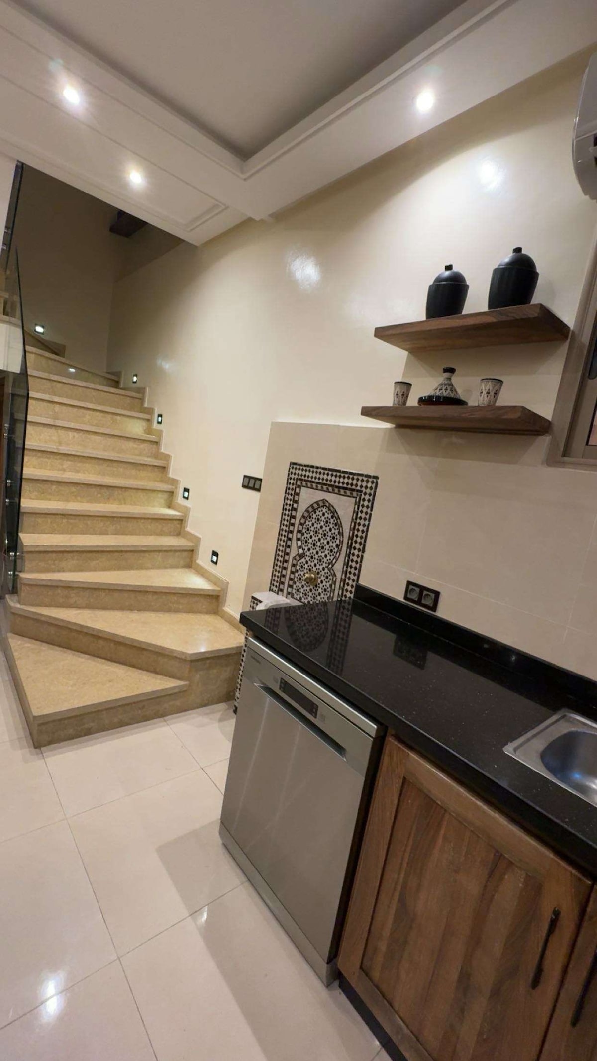 Modern, bright apartment in the heart of Gueliz. Smart lock entry, stylish living room with TV, equipped kitchen, 2 elegant bedrooms and a stone bathroom with a “waterfall” shower. Walking distance: 📌 Distances from: • 🕌 Jamaa El Fna Square – 10 min • 🌴 Majorelle Garden / YSL Museum – 5 min • 🏰 Bahia Palace – 15 min • 🕌 Medina / Souks – 10 min • ✈️ Marrakech Menara Airport – 12 min • 🛍️ Carre Eden / Starbucks – 3 min • 🍽️ Restaurants & cafés – right at the doorstep