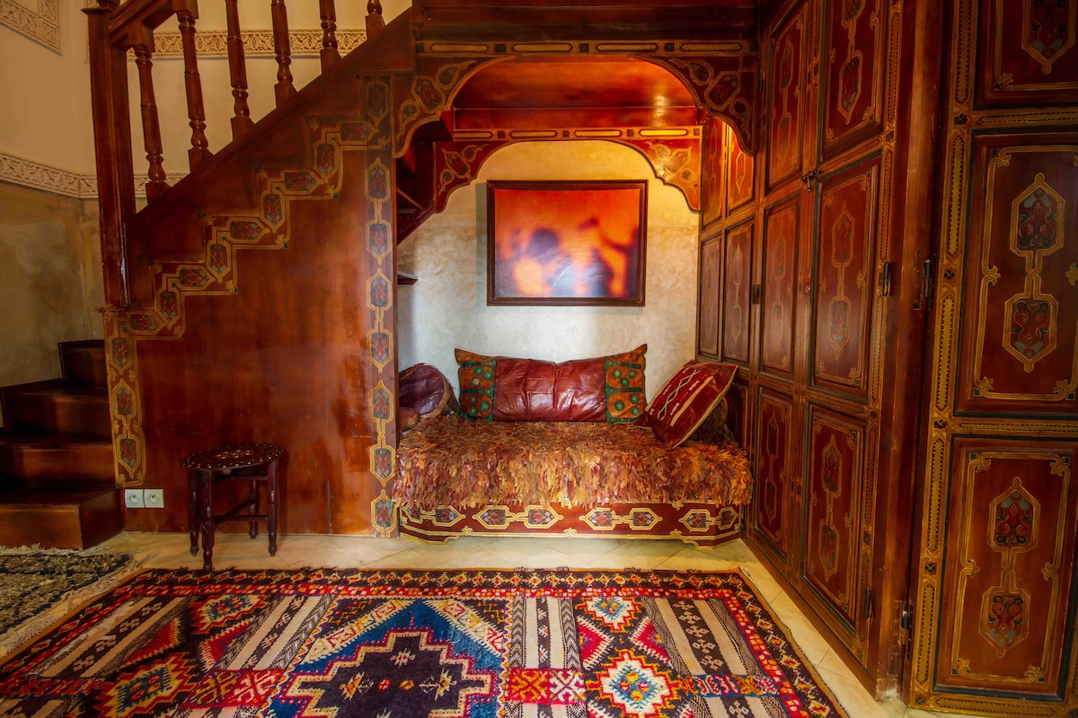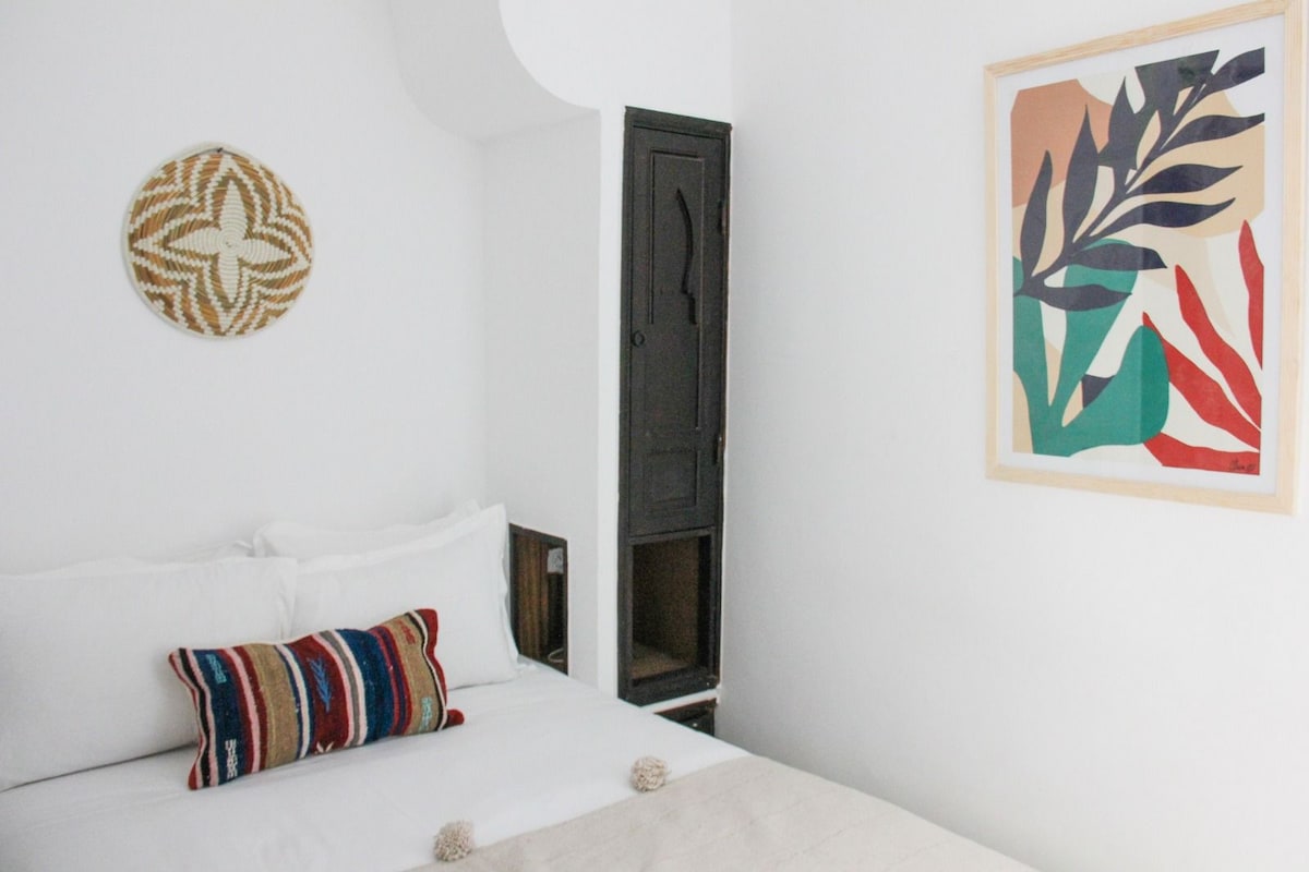 Stay in a charming riad in the heart of Marrakech Medina! Our riad features 5 authentic rooms, each with a private bathroom. This listing is for one room only, and you can choose your favorite upon arrival. Enjoy a unique mix of Moroccan tradition and modern comfort, perfect for couples, solo travelers, or friends. Just steps away from souks, monuments, and local restaurants, it’s the ideal base for an unforgettable Marrakech experience.