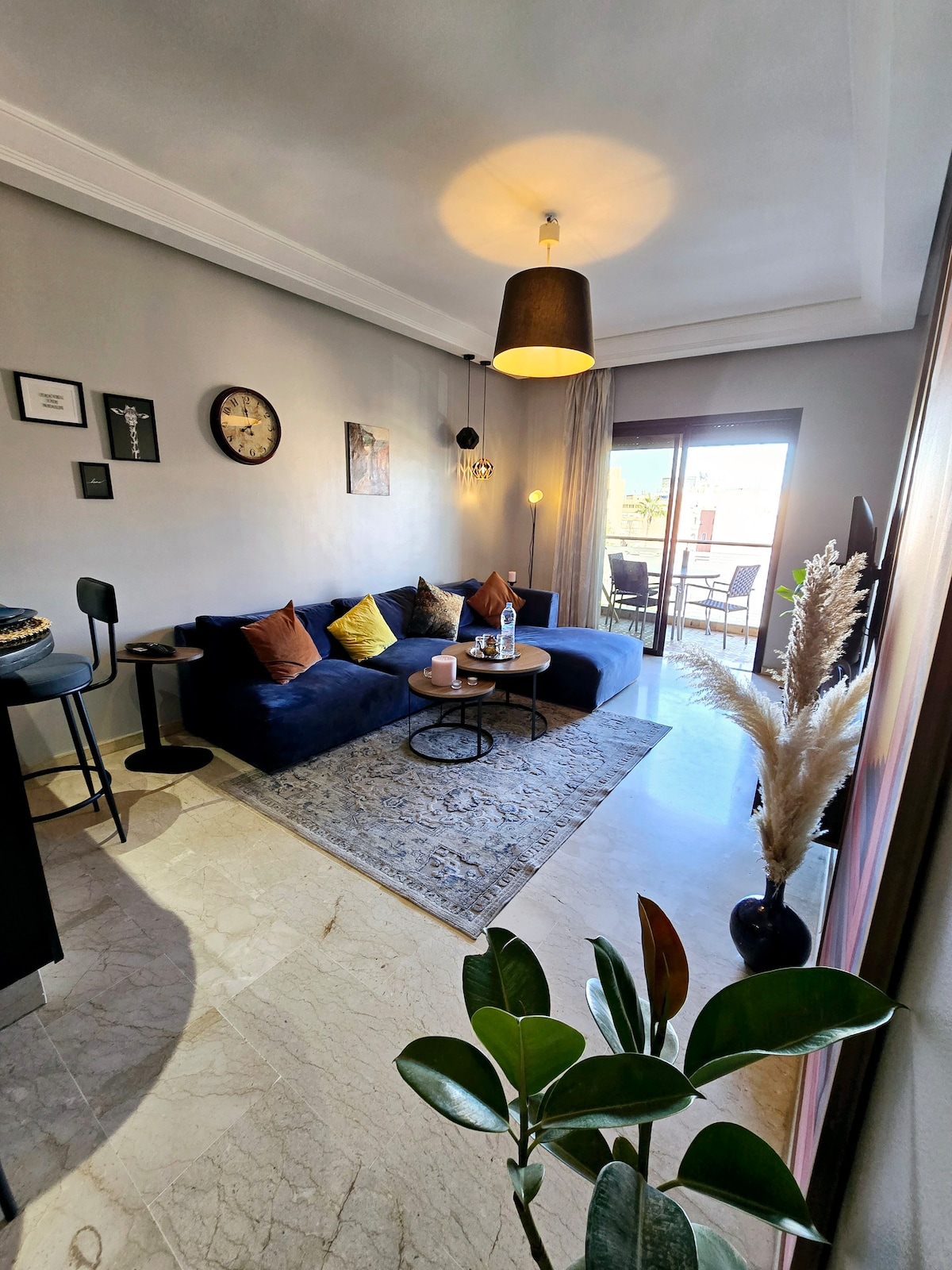 Appartement ensoleillé, chaleureux et hors pair, idéalement situé dans une résidence neuve en plein coeur du quartier mythique, Guéliz, avec une vue sur le Mall Carré Eden, très bien asservi et proche de toutes commodités. Moderne avec une touche marocaine, il est aménagé pour que vous vous sentiez chez vous, c'est le point de départ idéal pour profiter des merveilles de Marrakech ainsi que pour y séjourner pour un voyage d'affaire. Il est également parfaitement adéquat au télétravail.